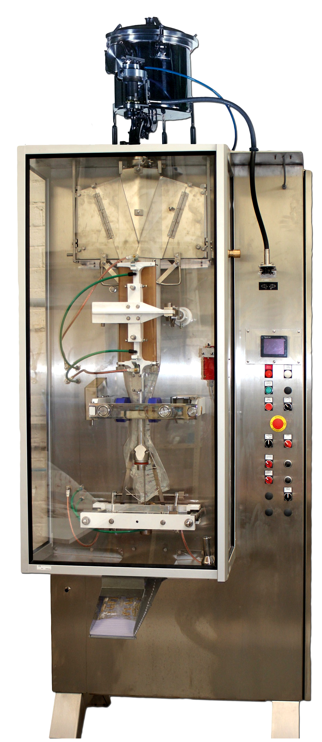 La cadence est de 2500 sachets à l’heure et est réglable grâce à un variateur. Elle est pilotée par un automate programmable et est équipée de portes avant et arrière de sécurité. Le nombre de sachets produits ainsi que les anomalies s’affichent sur l'écran.